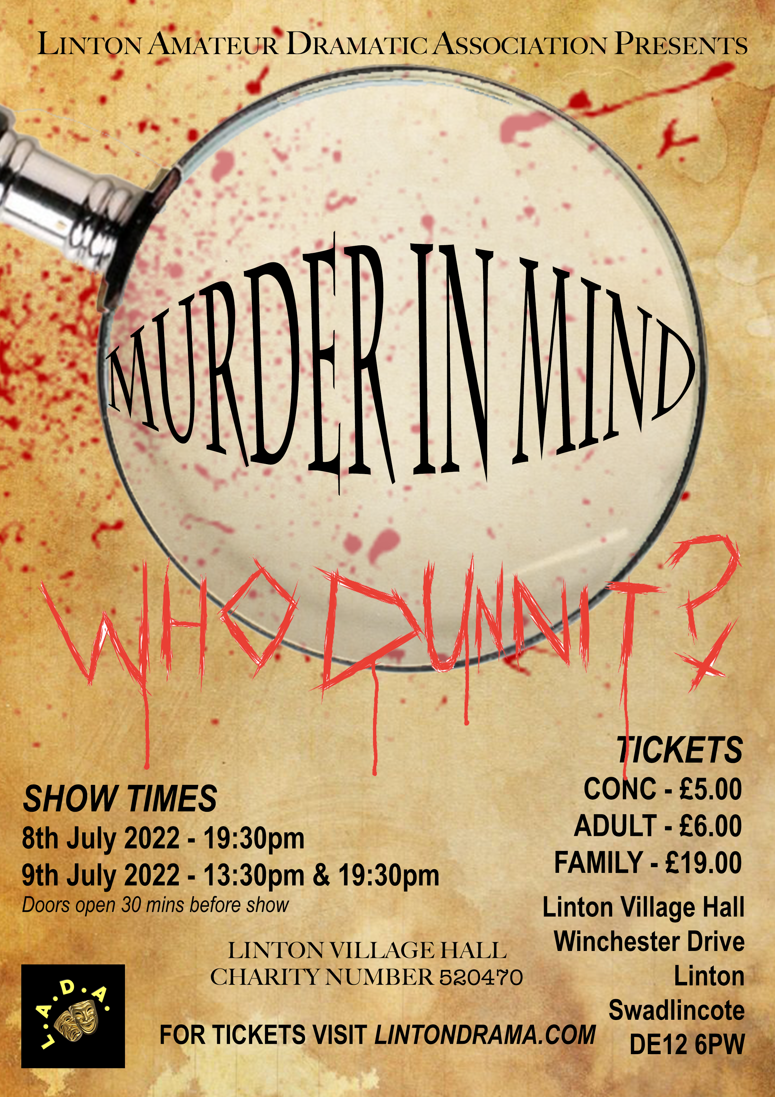 Set in an amateur theatre Murder in Mind is a classic Whodunnit. A group of actors are trying to decide what play to perform next when strange things start to happen. With a murder in their midst will they survive the night?